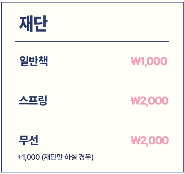 복원 방식이 무선일 경우에도 보다 정교한 재단이 필요해서 2,000원으로 책정되는 경우가 많습니다.